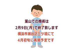 あけましておめでとうございます。旧年中はえんどう治療院をご愛顧いただき、ありがとうございました。 さて、当院は2007年の葉山移転以来、19年間にわたり葉山の地で施術を続けてきました。この場所で多くのご縁をいただき、皆さ […] -